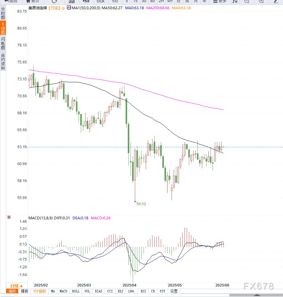 回顾过去几个月,原油市场经历了剧烈波动。自总统特朗普开启其第二任期以来,全球贸易担忧情绪不断升级,尤其是围绕关税和关键资源供应的争端,使油价自年初以来累计下跌近两成。   然而,自5月中旬起油价波动明显减弱,投资者逐渐转向关注实际需求与产量变化。   OPEC+是否继续释放更多闲置产能,成为市场关注的下一个焦点。据悉,沙特可能推动维持当前增产节奏,以重新夺回市场份额。该组织与其盟友计划于7月6日召开会议,讨论下半年产量政策。   与此同时,期权市场的交易动向也显示出投资者的分歧情绪。根据CME集团数据,WTI原油跨期价差期权(Calendar Spread Options)的未平仓合约本周触及历史高位,反映出部分投资者押注年底前全球供应将出现过剩。   据市场调查显示,机构普遍预计,即使OPEC+延续增产节奏,考虑到地缘政治不确定性与美国夏季出行需求的增长,全球原油市场短期内仍难以出现大幅供过于求的局面。   从技术面来看,美原油(WTI)日线图显示价格正运行于短期上升通道内,支撑位位于62美元附近,而上方阻力集中在64.50美元区域。近几个交易日,WTI在60日均线处获得支撑,并成功突破20日均线压制,显示短期多头动能逐步增强。   同时,MACD指标呈现金叉信号,动能柱持续放大,表明价格有望进一步测试65美元关口。若能有效突破该阻力位,下一目标或将指向67美元一线。反之,若跌破通道下轨,则需警惕重回震荡区间的风险。