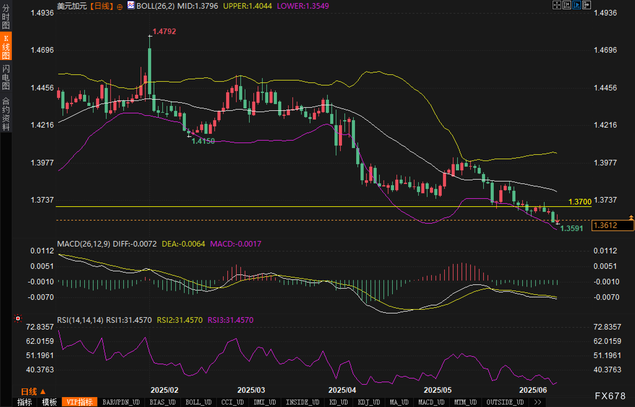 短期来看,分析认为美元或继续受到地缘政治与贸易不确定性的支撑,但考虑到加拿大央行鹰派立场与油价可能继续上行的趋势,汇价在1.3700下方仍将维持震荡偏弱格局。若后续突破1.3591支撑,则可能开启新一轮下跌行情,测试1.3550乃至1.3500。