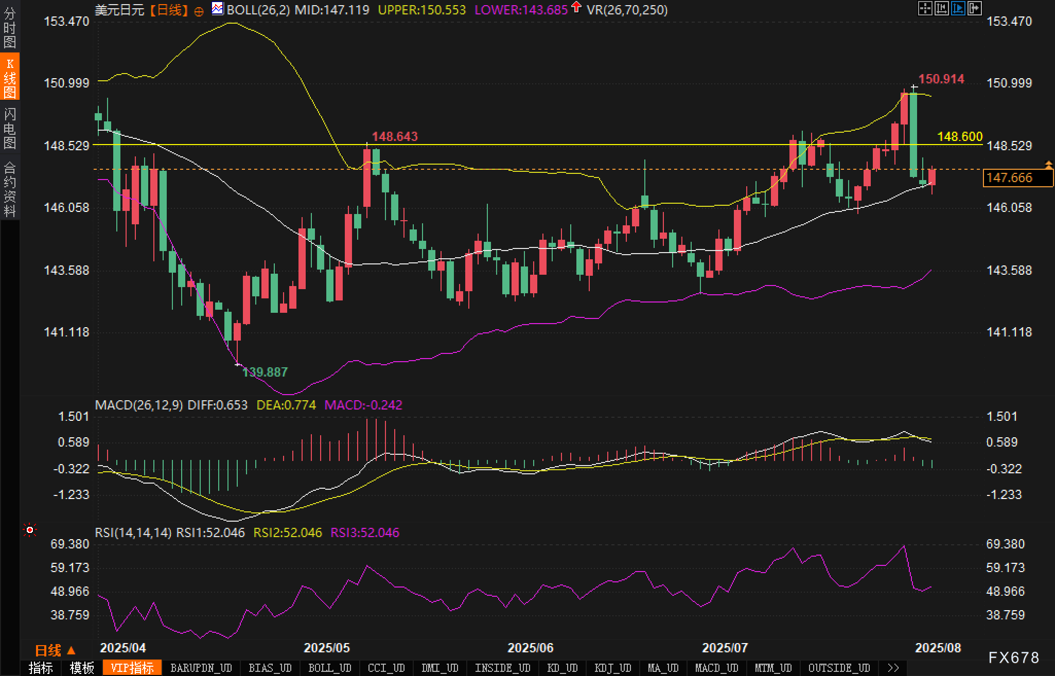 但值得注意的是,尽管基本面偏空,美元兑日元仍表现出较强的抗跌性,背后或反映出市场对全球利差逻辑仍有较高依赖。在这一背景下,美元兑日元的中短期走势仍有赖于政策落地的节奏与预期的修正。